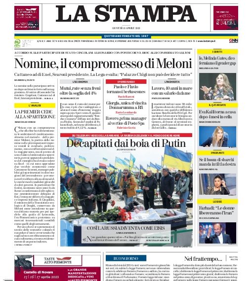 La Stampa, è un quotidiano fondato nel 1867 a Torino, si distingue per l’approfondimento imparziale su politica, economia e cultura. Con una rete globale di giornalisti esperti, offre informazioni di prima mano. La sua integrità e impegno per il giornalismo di qualità ne fanno una pietra miliare dell’informazione italiana. La Stampa si è guadagnata la fiducia dei lettori grazie alla sua presentazione equilibrata dei fatti e all’attenzione ai dettagli. Continua a difendere i valori fondamentali del giornalismo, promuovendo un dialogo costruttivo e contribuendo a plasmare l’opinione pubblica con la sua copertura informativa accurata e professionale.